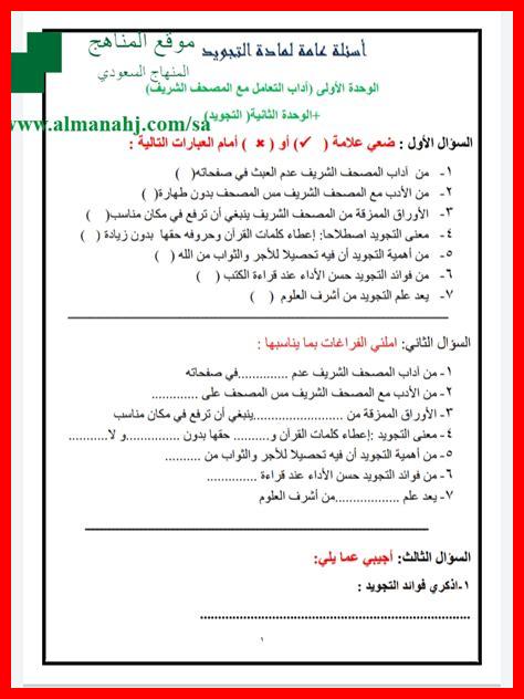 تتضمن أسئلة اختبار التجويد مجموعة متنوعة من المواضيع. على سبيل المثال، يمكن أن تشمل الأسئلة ما يلي: